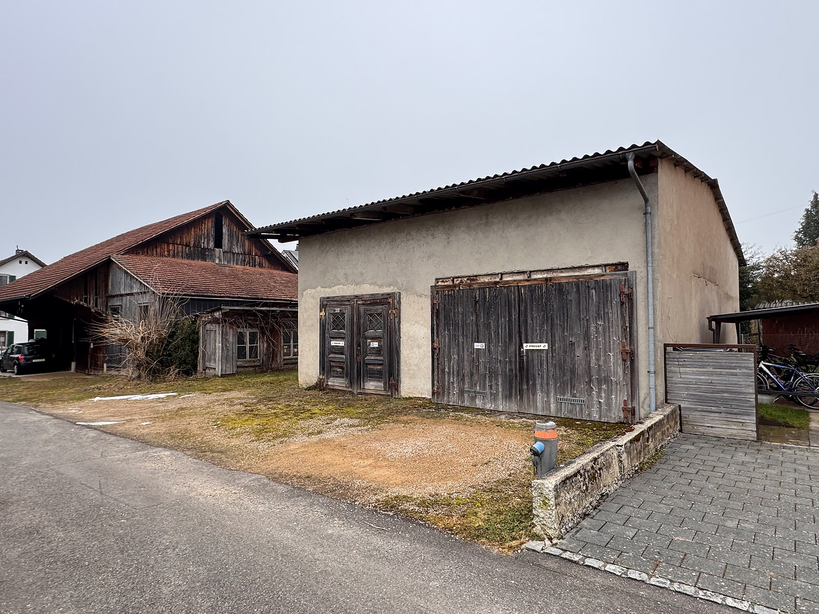 zu verkaufen in Schafisheim – schöne quadratische Baulandparzelle mit spannenden Ökonomiebauten, in ruhigem Einfamilienhausquartier an einer Privatstrasse