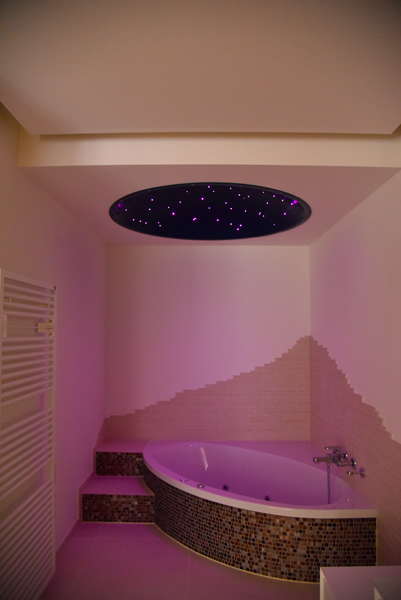 Wir durften die Kundin eingehend beraten und die Umbauarbeiten koordinieren. Der Sternenhimmel mit Glasfaserkabel wurde in unserer Werkstatt gefertigt.